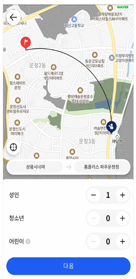 2. 성인, 청소년, 어린이의 숫자를 탑승하는 인원에 맞추어 입력해 주세요.